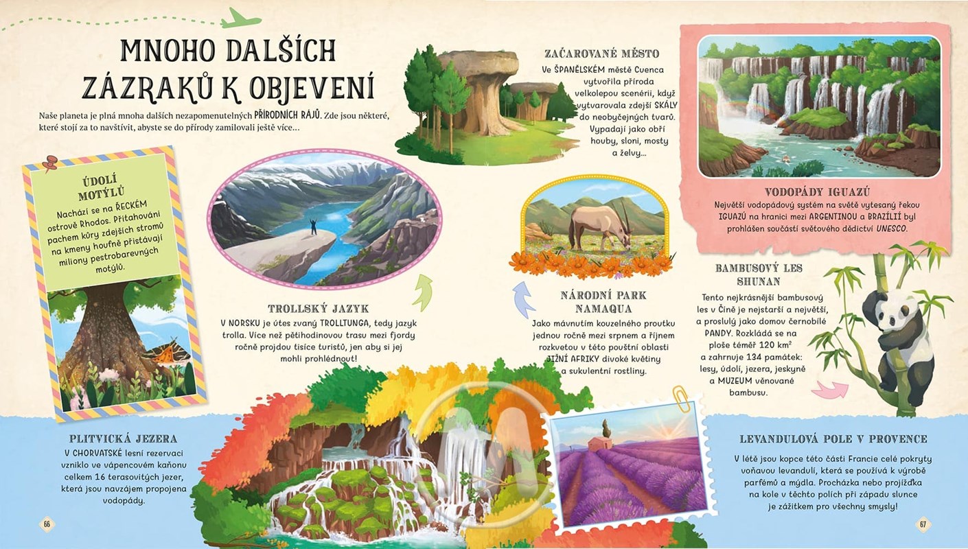 Fantastická cesta k objevení 20 A DALŠÍCH DIVŮ PŘÍRODY, místa neskutečné nádhery vyprávěna těmi, kteří je zkoumali nebo zde žili. Od amazonského pralesa až po Grand kaňon; od Velkého bariérového útesu až po Himaláje; od Viktoriiných vodopádů až po poušť Atakama.
