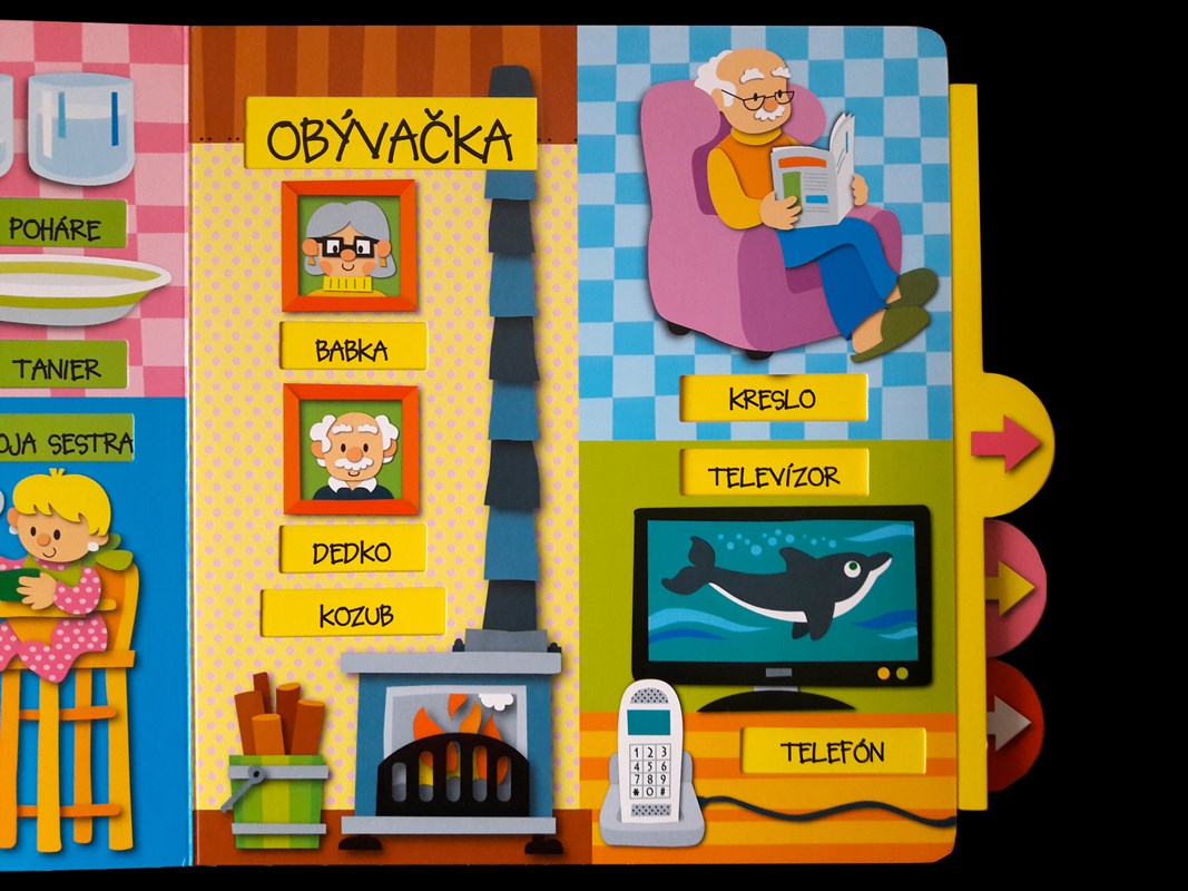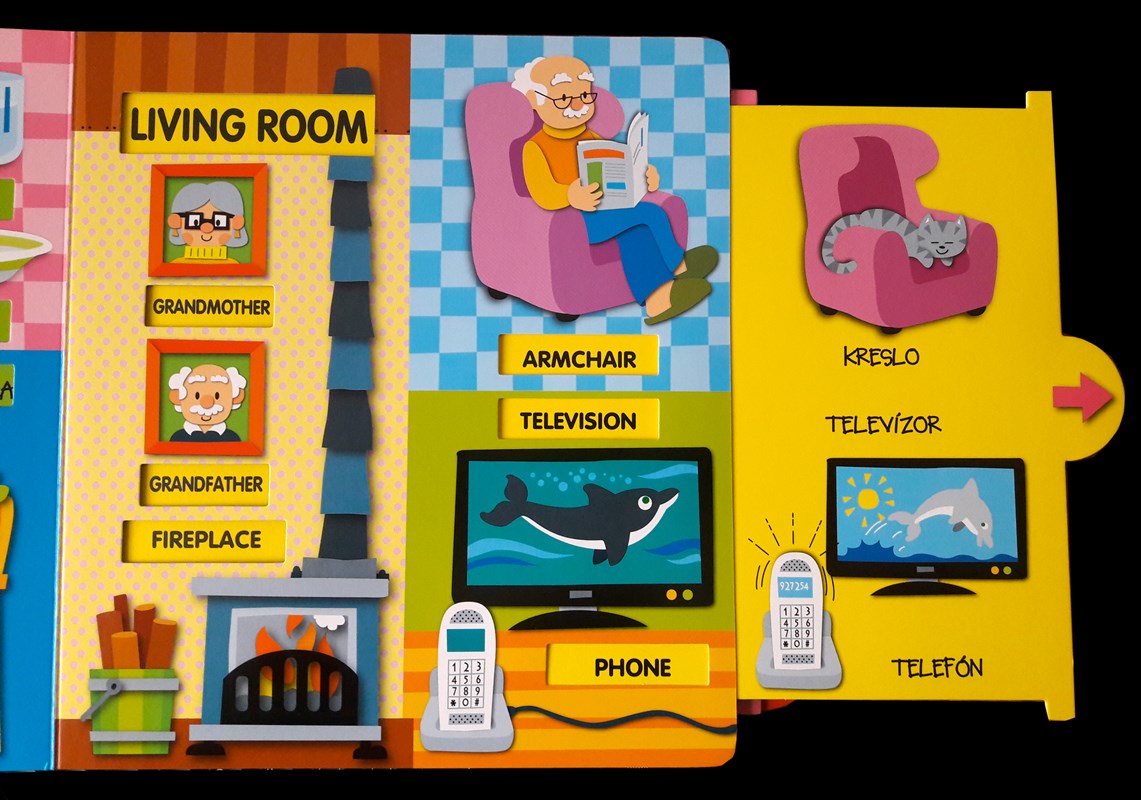 Séria interaktívnych kníh pre deti pomáha zábavnou formou pri učení angličtiny. Najprv prečítajte slová na strane v slovenčine, potom potiahnite šípky a slová sa premenia na anglické. Tiež si môžete spolu zahrať hádanku, aké slovo sa ukáže po potiahnutí šípky.
