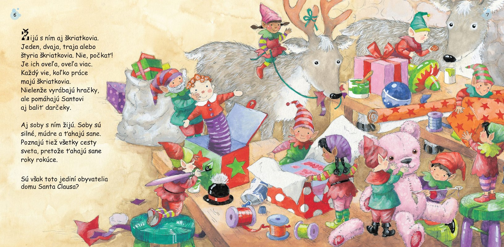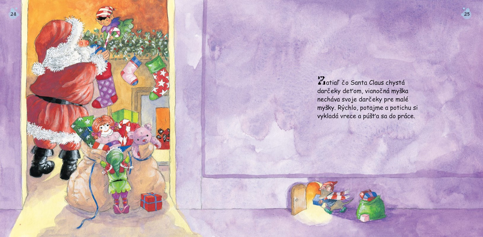 Santa Claus pozná všetky deti, ale to, že v jeho dome žije aj vianočná myška, bolo tajomstvo, o ktorom nik nemal ani potuchy - dokonca ani Santa Claus - až doteraz. Malá myška sa totiž skrýva vskutku bravúrne. Kým Santa Claus balí darčeky, myška ho pozorne sleduje a zoberie všetko, čo spadne na zem: autíčka, guľôčky, farebné stuhy... Neskôr prichystá darčeky pre malé myšky z celého sveta a 24. decembra vyrazí so Santa Clausom v špeciálnej skrýši rozdať všetky darčeky. Roztomilý príbeh o vianočných darčekoch pre veľké aj malé myšky.