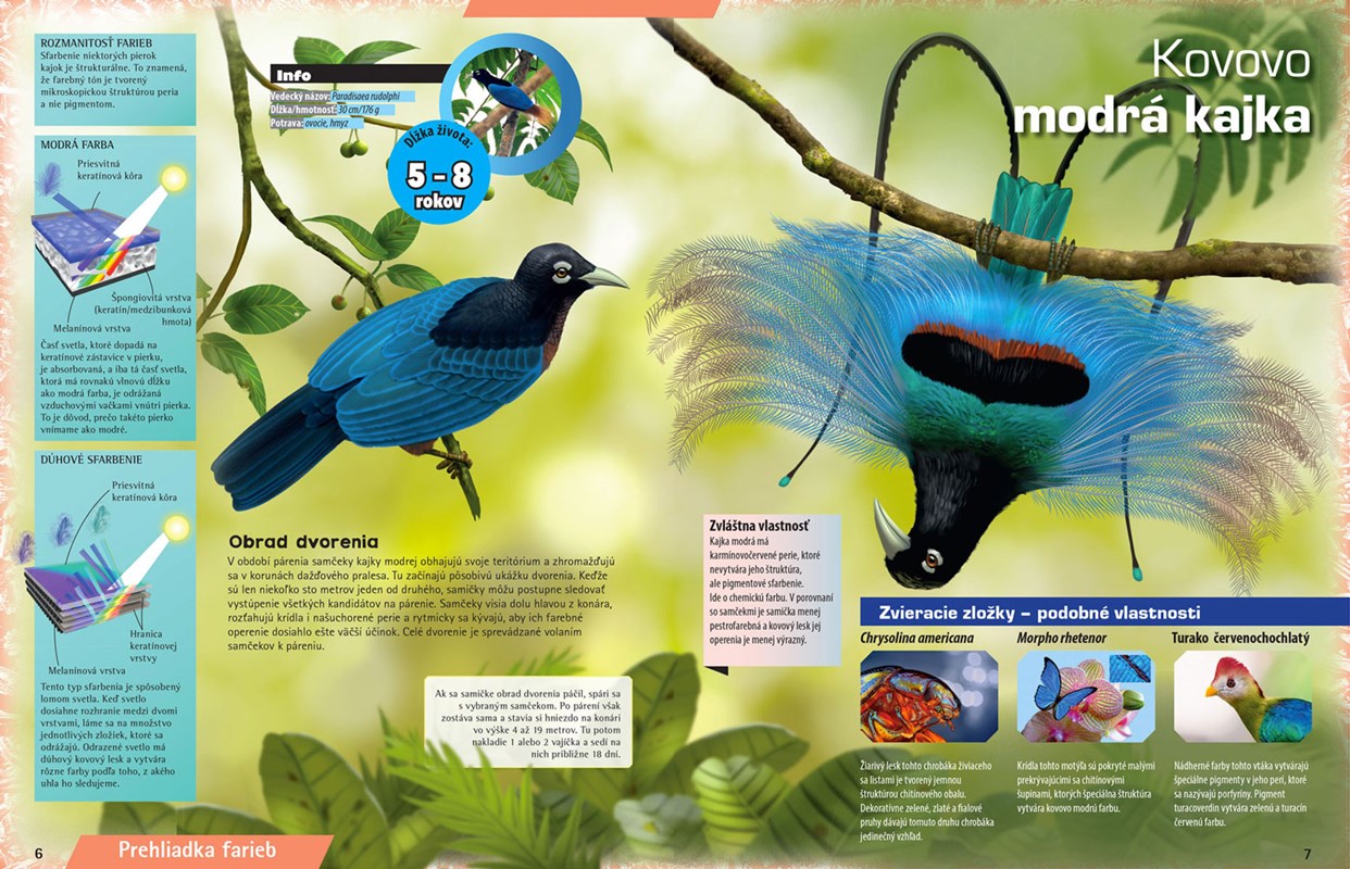 Nazrite do života zaujímavo sfarbených živočíchov a spoznajte zvieratá s nezvyčajným telom. Prečítajte si o morskom listovom drakovi, ktorý napodobňuje morské rastliny, o plachtiacej lietajúcej jašterici i o najvyššom zvierati žijúcom na zemi - o žirafe.