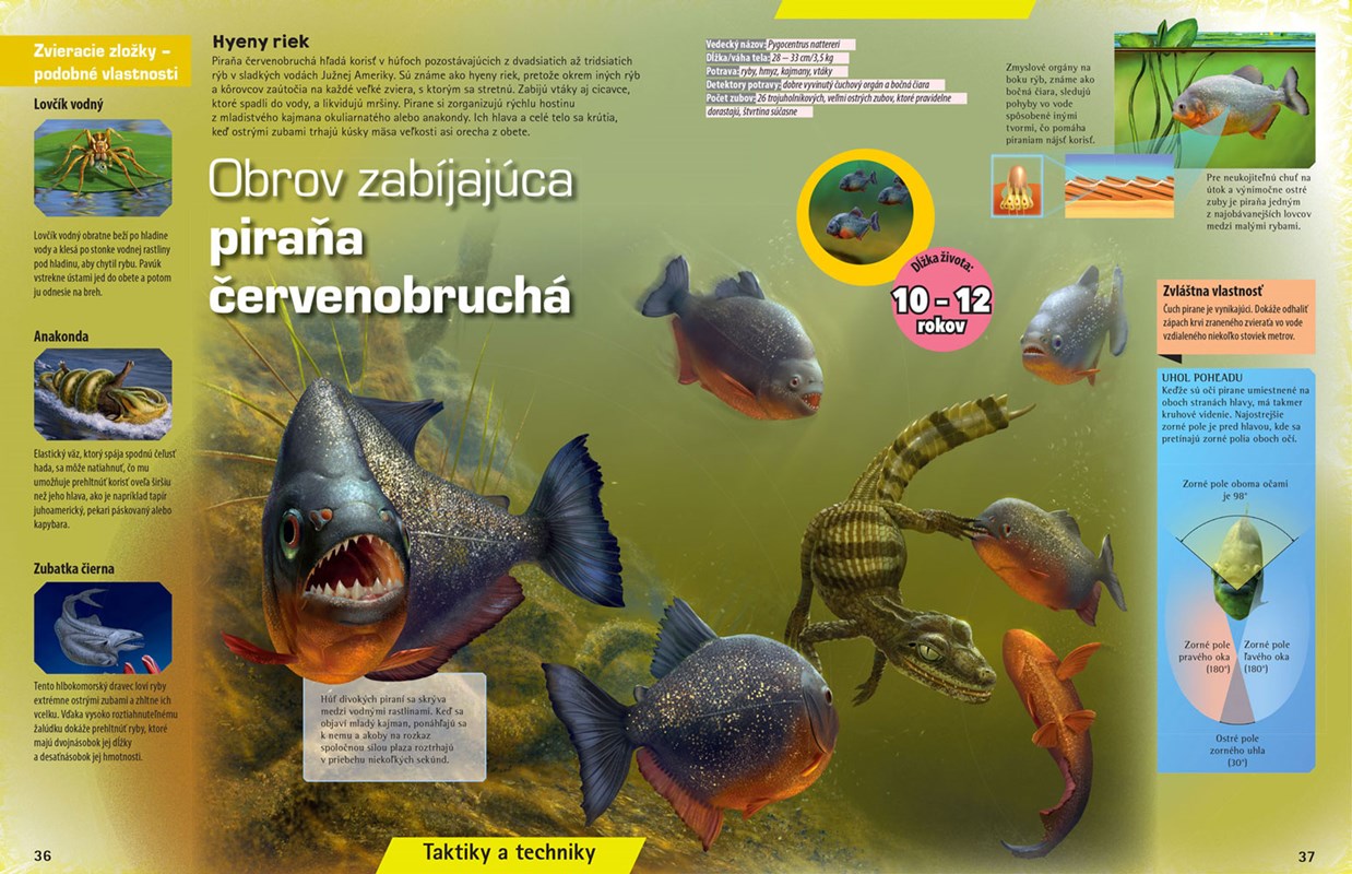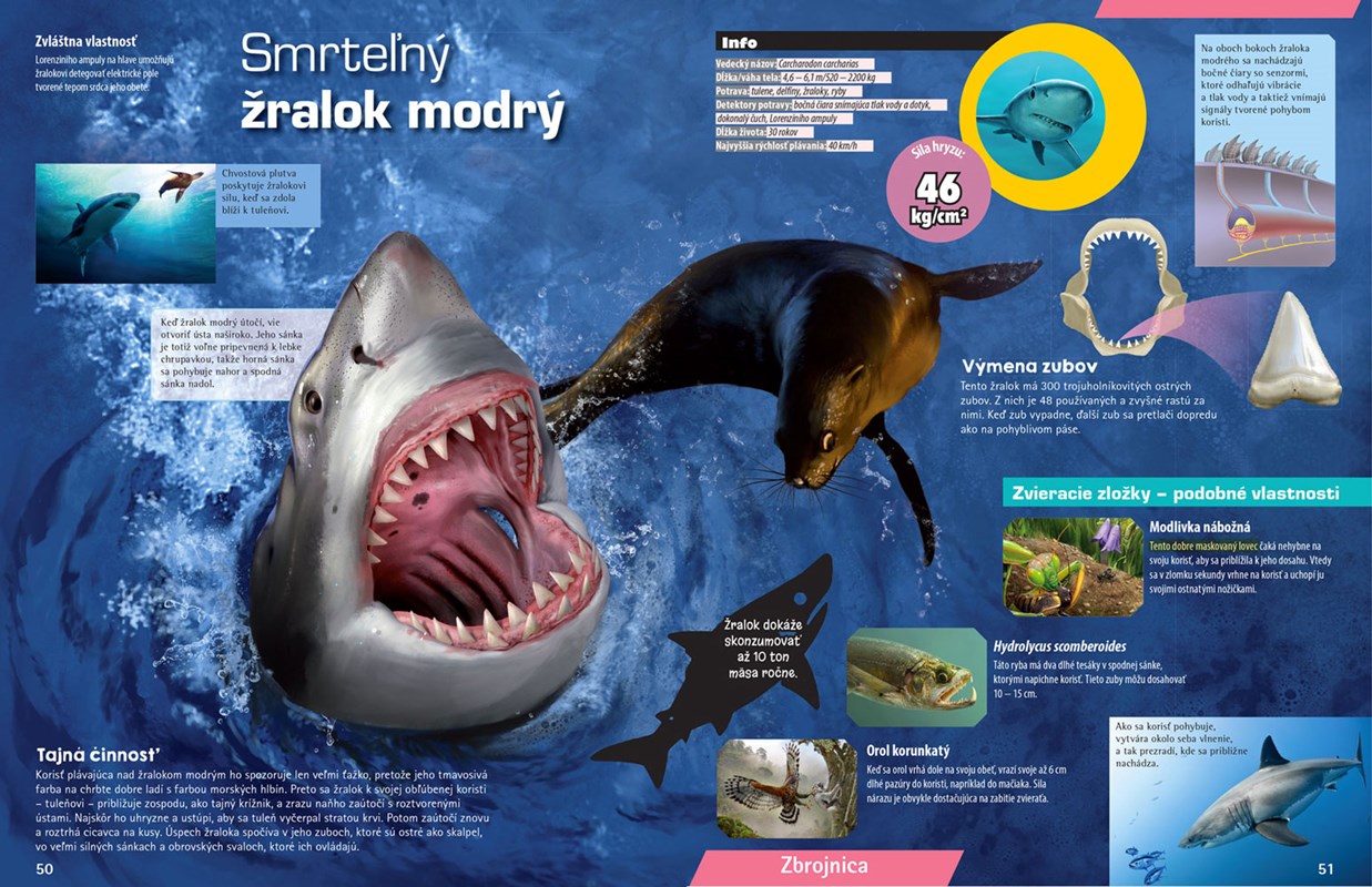 Navštívte s nami kráľovstvo zvierat a spoznajte jedinečné živočíšne druhy žijúce vo voľnej prírode. Nádherné ilustrácie, úžasné opisy a množstvo informácií vám pomôže odhaliť tajomstvá prírody, ktoré sa skrývajú za nevšedným zjavom, výnimočným talentom, spoločenským životom a úspešnou technikou lovu. Prečo je varan komodský pokladaný za hrôzostrašného lovca? Ako levy prenasledujú svoju obeť? V tejto knižke sa dozviete odpovede nielen na tieto otázky. Prečítajte si tiež o taktikách a technikách lovu známych aj menej známych mäsožravcov a o neuveriteľných zbraniach, ktoré pri love používajú.