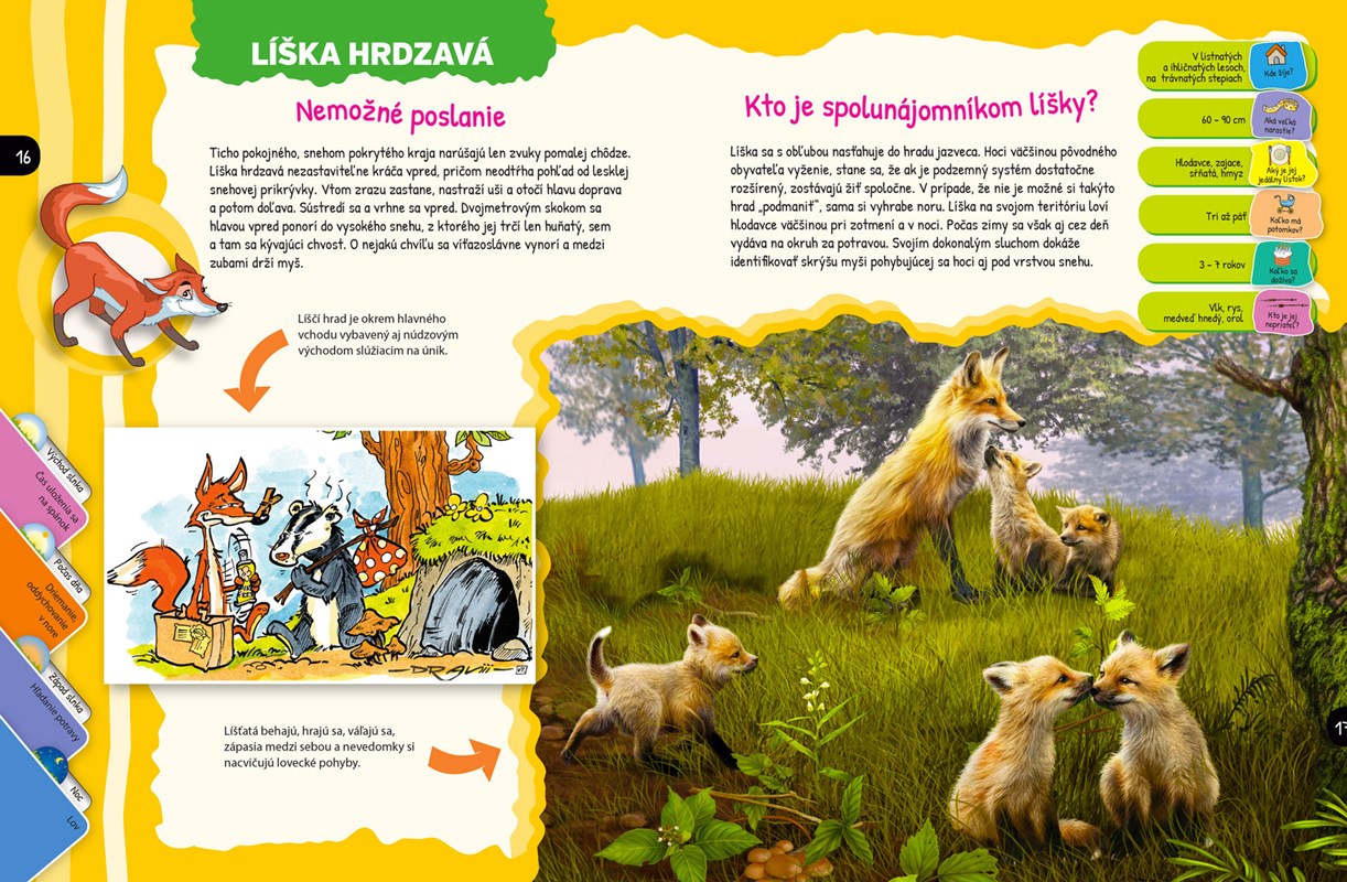 Čítaním série Momentky z divočiny môžete v predstavách navštíviť sedem svetadielov našej planéty. Dobrodružstvá zvierat v lesoch, vodách a pláňach ožívajú cez nádherné maľby a vtipné obrázky, ktoré dokonale dopĺňajú pútavé a stručné príbehy. Najdôležitejšie údaje o každom druhu sú uvedené samostatne vo zvýraznených blokoch. Okrem toho môžete spoznať základnú charakteristiku správania zvierat. Poďte a vydajte sa s nami na virtuálny výlet do Európy a nájdite odpovede aj na otázky: Prečo má diviačie mláďa pásiky? S kým zdieľa líška obydlie? Ako sa dorozumievajú svište?