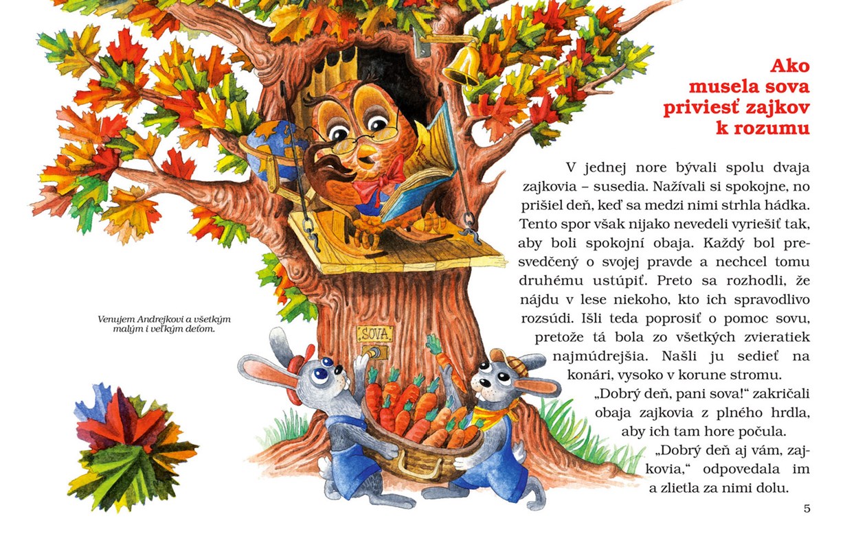 V tejto knižke deti nájdu mnoho zaujímavých a poučných rozprávok, ako napríklad o dvoch nezbedných papučkách, o múdrej sove či o tom, ako vzniká dúha. Rozprávky dopĺňajú i prekrásne obrázky. Bystré hlávky isto ľahko vyriešia krátke hádanky a šikovné jazýčky sa naučia recitovať básničky. Spriatelia sa s vločkou Sniežkou, s tučkom Hučkom a postupne aj so všetkými písmenkami abecedy.