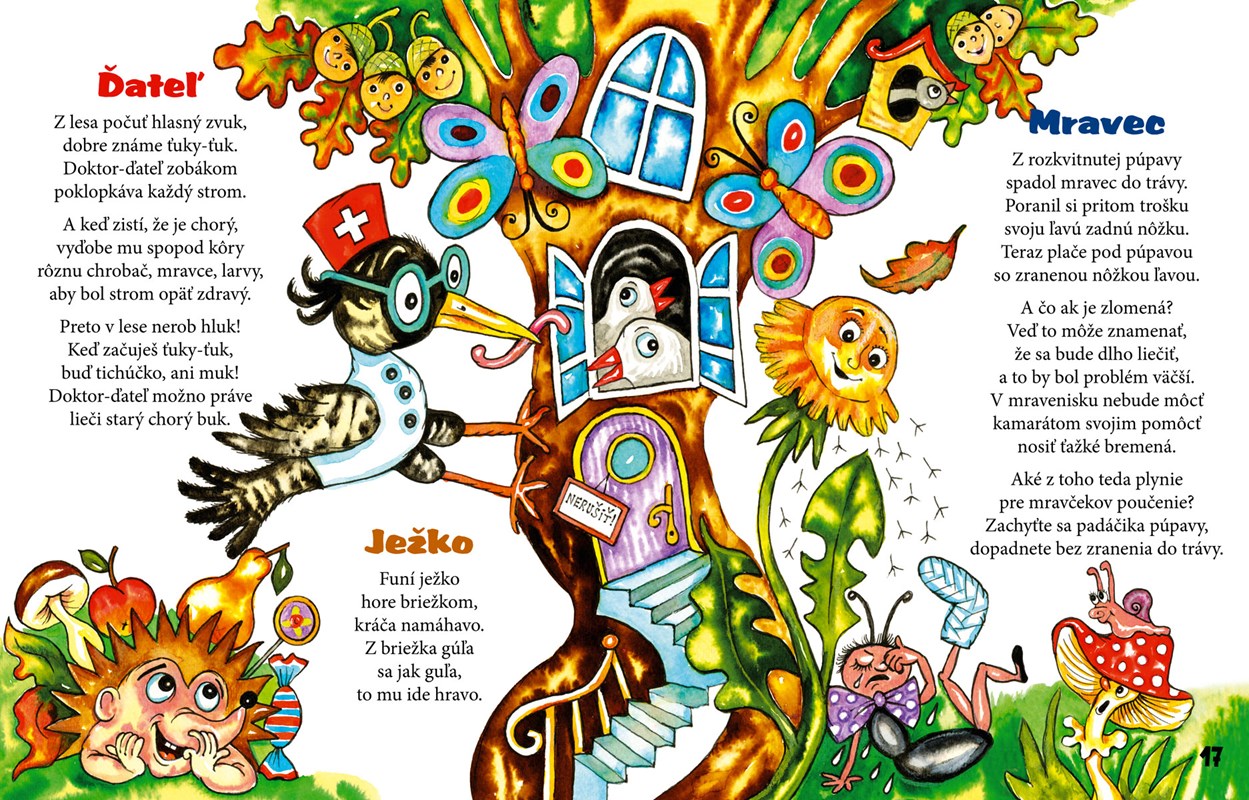 Čo všetko čaká malého prváčika v školskej lavici? Aké zaujímavosti ukrývajú prvácke zošity a učebnice? Knižka odkrýva prváčikovi 7 výhod chodenia do školy nenúteným, ale zábavným a poučným spôsobom: 1. naučí sa počítať a logicky myslieť, 2. naučí sa o rastlinkách a stromoch, 3. naučí sa o živočíchoch, 4. naučí sa o striedaní dňa a noci i ročných období, 5. naučí sa o hygiene, zdraví a zdravej výžive, 6. naučí sa prekonať svoj strach, 7. naučí sa čítať a hlavne získa veľa nových kamarátov.