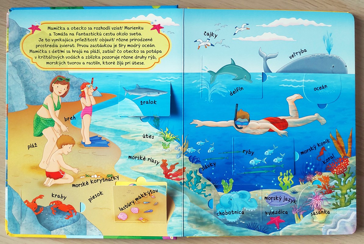 Odhaľ mnoho zaujímavostí o zvieratách a prostredí, v ktorom žijú! V tejto okienkovej knižke sa zoznámiš so zvieratami obývajúcimi šíry modrý oceán, lesné čistinky i horské oblasti, vzrušujúcu džungľu, savanu i chladné póly. Prezri si farebné ilustrácie a vychutnaj si neuveriteľný výlet okolo sveta!