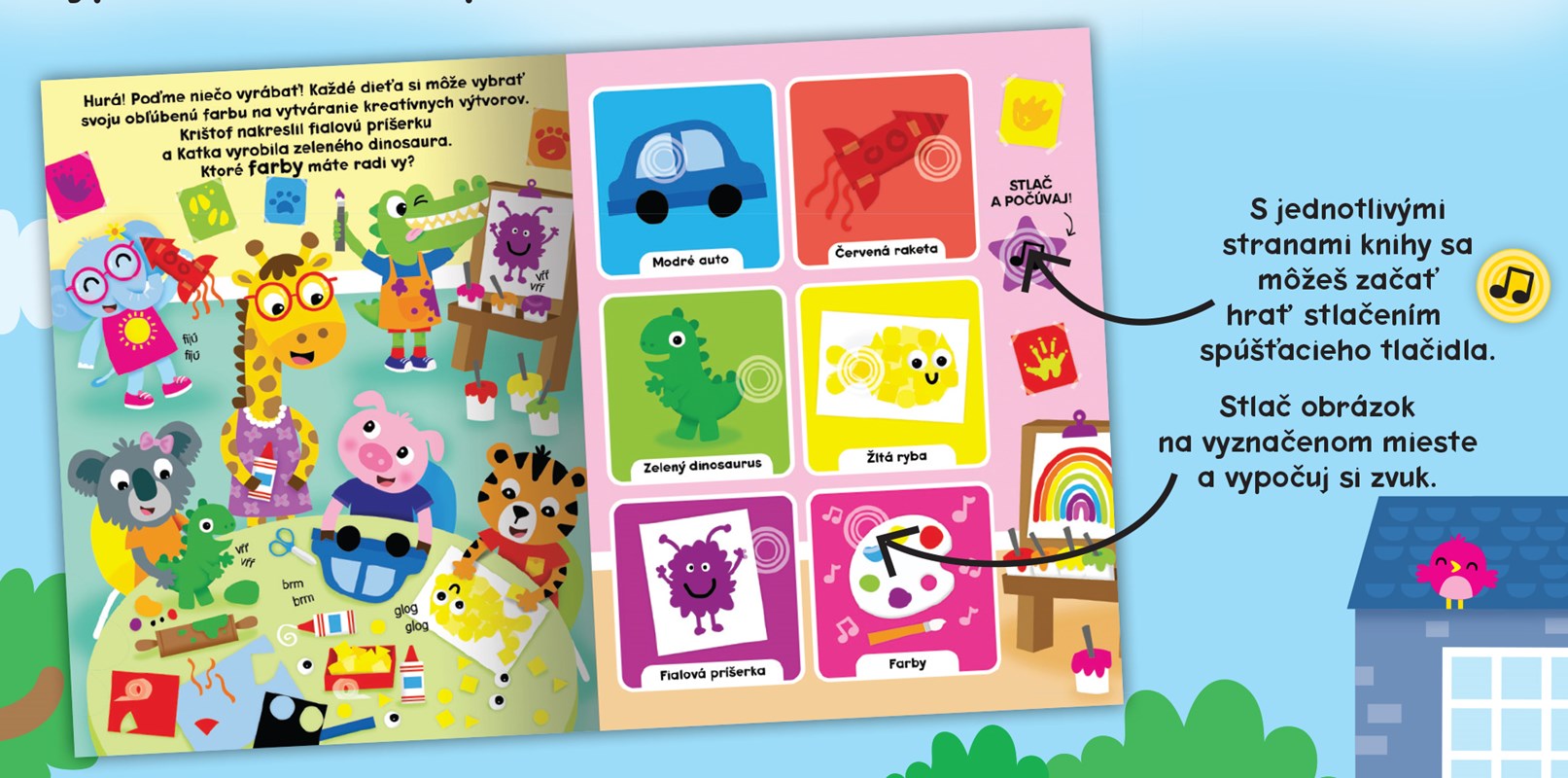 Táto farebná zvuková kniha zoznamuje najmenších s prvými vedomosťami. Deti zažijú mnoho zábavy pri učení sa farieb, tvarov, čísel, hudobných nástrojov a základných emócií, ktorých zvuk si môžu vypočuť stlačením príslušného tlačidla. Vďaka rozkošným zvieracím kamarátom, ktorí sa do škôlky vždy tešia, lebo tam zažijú krásne chvíle a zabavia sa, sa dieťatko bude určite tiež tešiť na nových kamarátov, ktorých si nájde. Zároveň sa vďaka zvukovej knižke naučí základné vedomosti potrebné pre nástup do prvého ročníka.