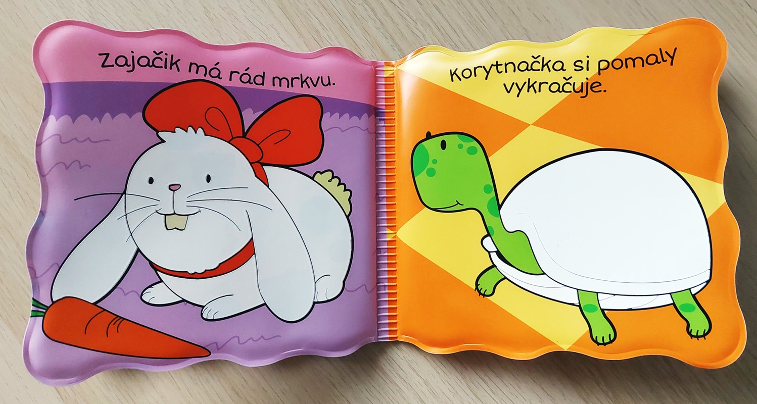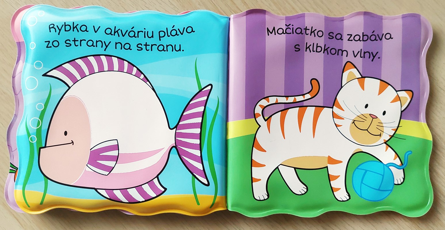 Séria Knižka do kúpeľa prináša deťom zábavu z vyfarbovania zvieratiek vodou! Krokom ku spríjemneniu chvíľ deťom počas kúpania je možnosť zabaviť ich leporelom. Nie však hocijakým, ale takým, ktoré sa rozžiari farbami po styku s vodou alebo so slinami. Alebo stačí pohár s vodou a drobné pršteky môžu kúzliť vodou priamo prechádzaním stranu po strane. O svojich drobcov sa nemusíte báť, pretože dané knižočky majú EÚ certifikát o zdravotnej neškodnosti. Môžu knihu močiť vo vode i olizovať, dokonca aj vtedy na nich spod obrázka vykukne farebné zvieratko. Veselé kúpacie leporelo s domácimi zvieratkami, ktoré si môžu vyfarbiť vodou (psík, papagáj, zajačik, korytnačka, rybka, mačiatko).