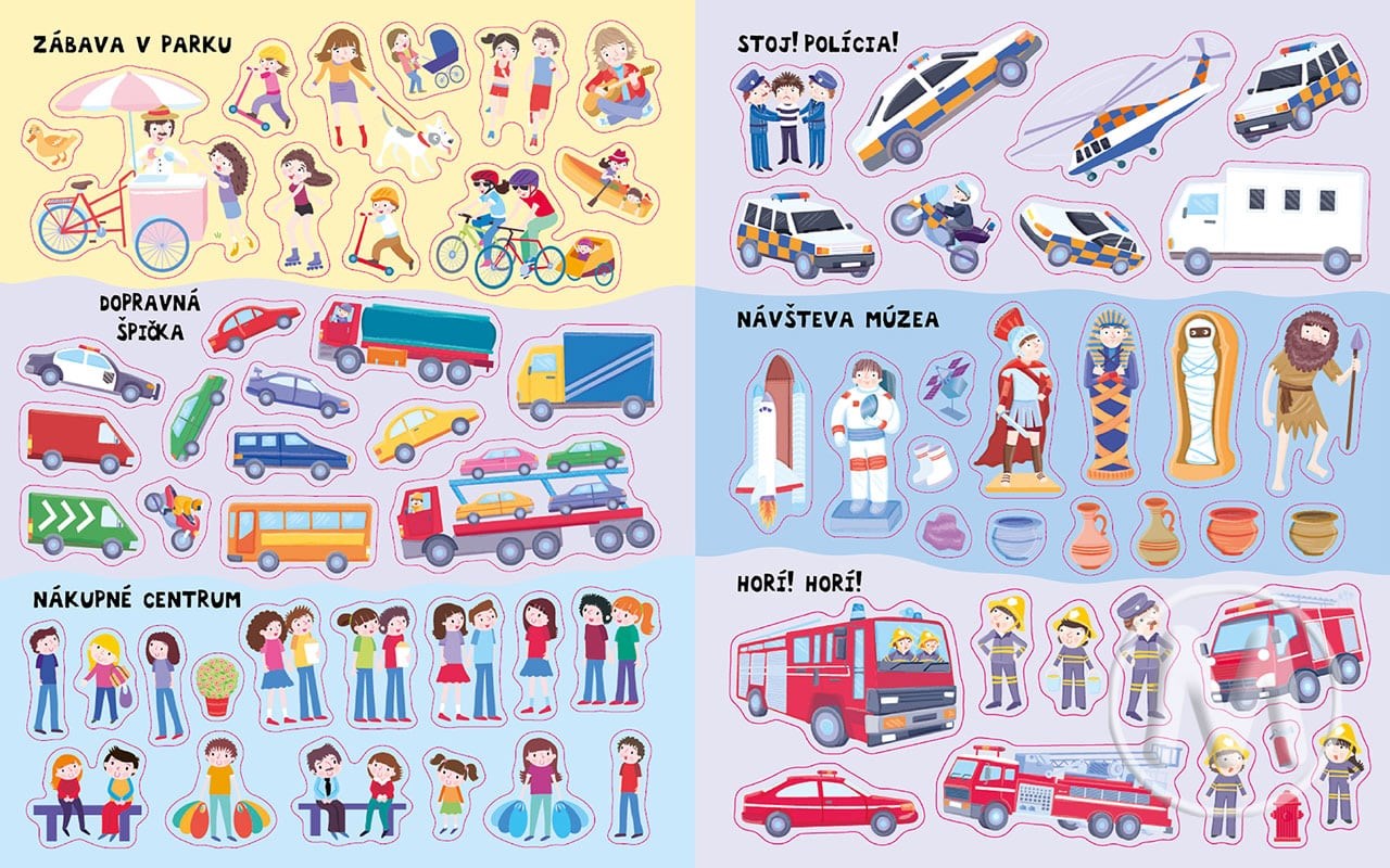 Táto úžasná knižka s viac ako 100 nálepkami je plná akcie! Nájdeš v nej parky, zoologické záhrady, požiarne stanice, staveniská - a oveľa, oveľa viac! Použi priložené nálepky a vytvor si vlastné vzrušujúce scény!