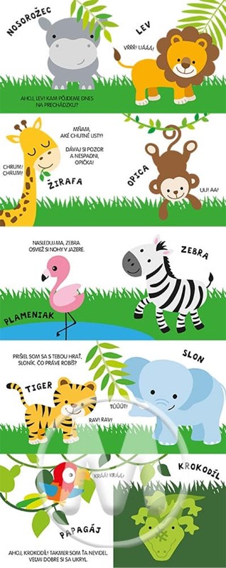 Vďaka týmto malým 6 knižočkám sa najmenšie deti naučia rozoznať zvieratká. Krátke a hravé texty sú určené na prvé čítanie. Deti spoznajú hmyz, zvieratká žijúce na farme, v lese, v divej prírode i v mori. Taktiež detičky zistia, ako sa nazývajú rôzne mláďatká. Zo zadných častí knižiek si deti môžu zložiť puzzle. Knižky prinášajú mnoho zábavy.