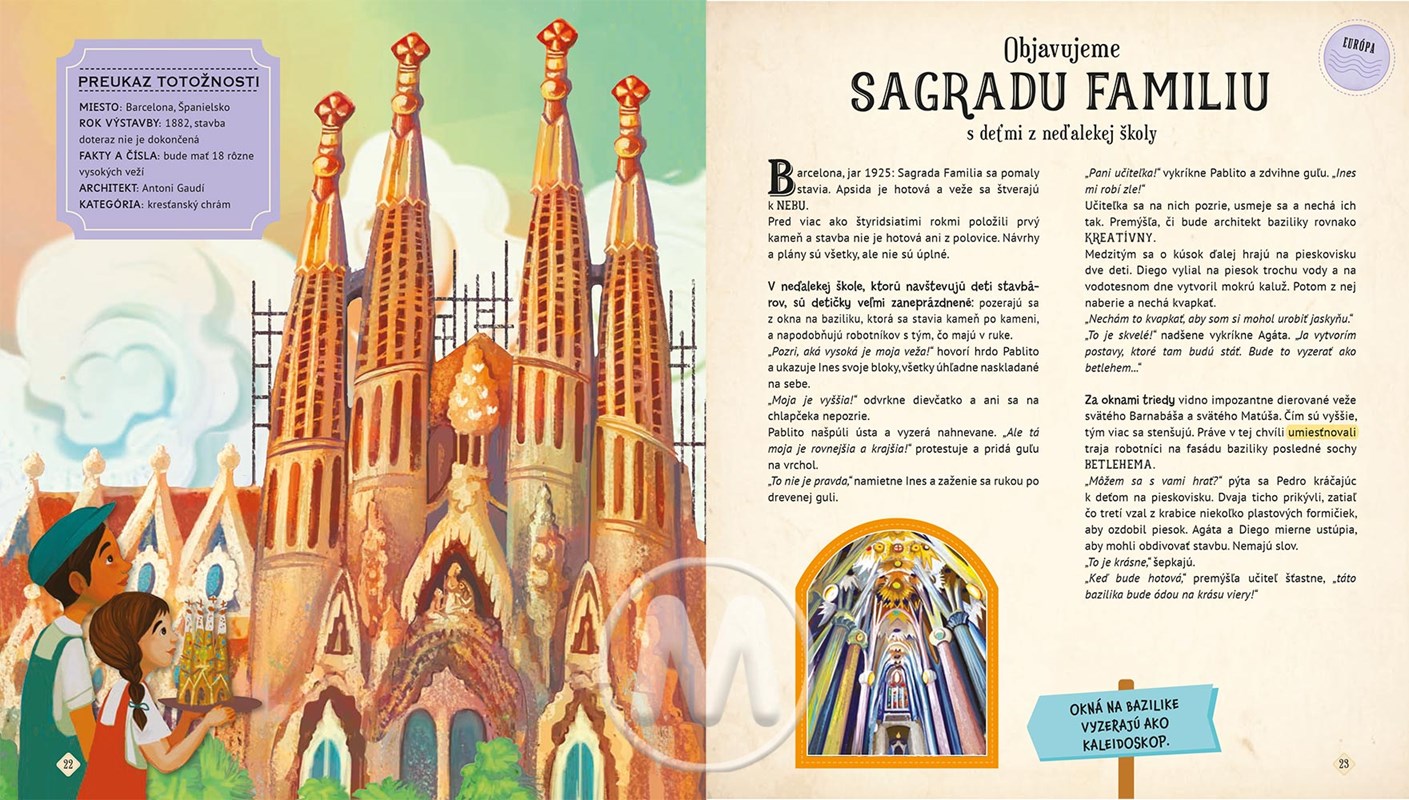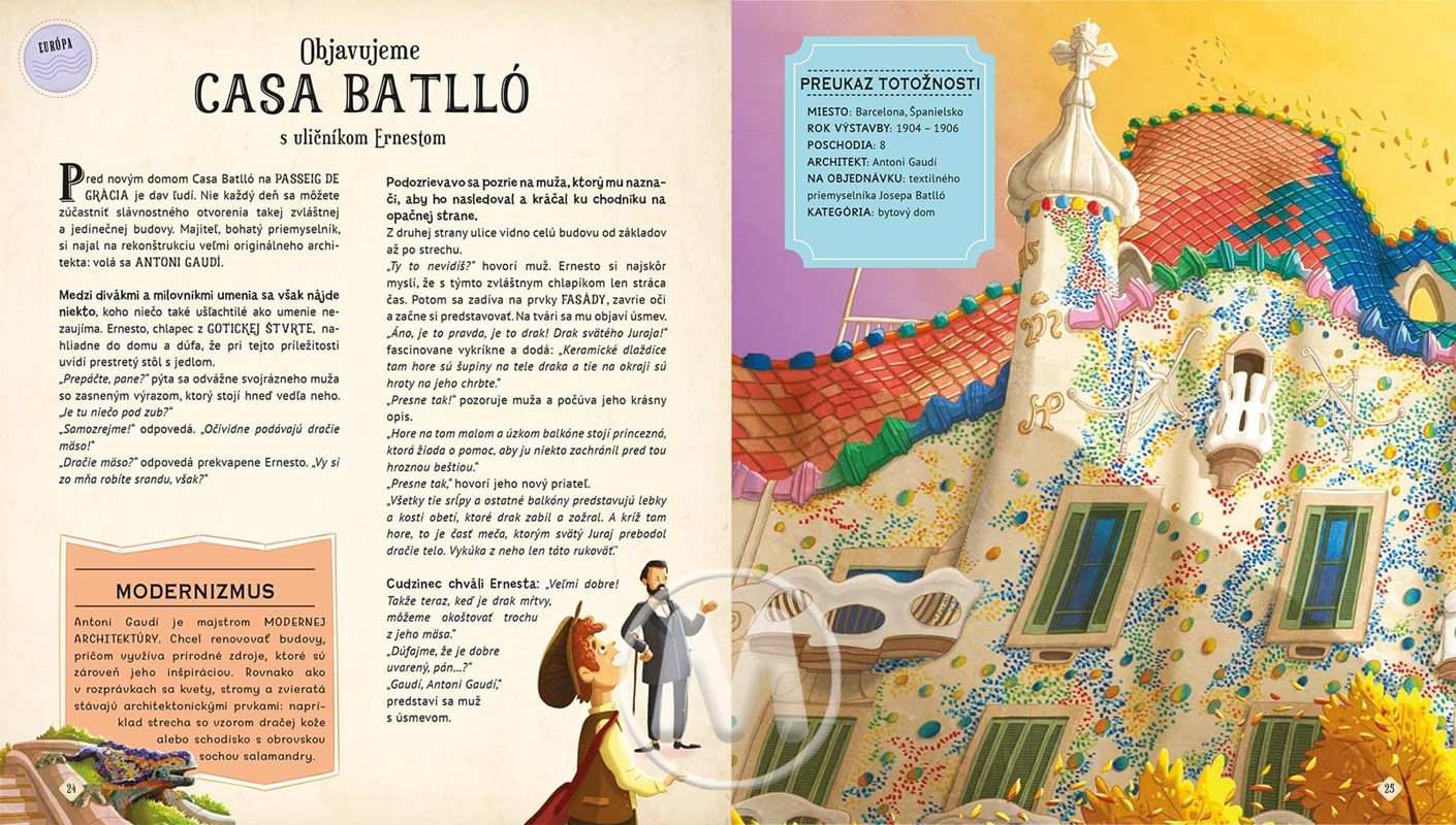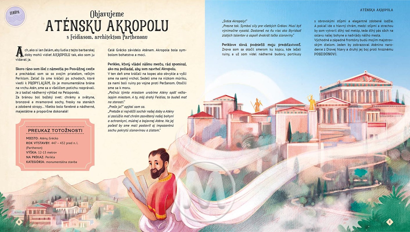 Fantastická cesta, na ktorej spoznáš VIAC AKO 20 DIVOV SVETA. Tieto nesmierne krásne miesta opisujú tí, ktorí ich navrhli, zachovali alebo v nich istý čas žili. Od aténskej Akropoly až po majestátnu Cheopsovu pyramídu, ktorou vás prevedie jedinečná Agatha Christie, od chrámu Sagrada Familia od Antoniho Gaudího až po sochu Krista Spasiteľa v Riu de Janeiro, od Eiffelovej veže po Sochu slobody! Dozvieš sa veľa zaujímavostí, získaš QR KÓD, vďaka ktorému si môžeš stiahnuť PAPIEROVÉ MODELY DIVOV SVETA, a učenie bude hrou.