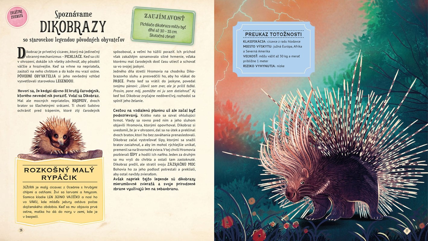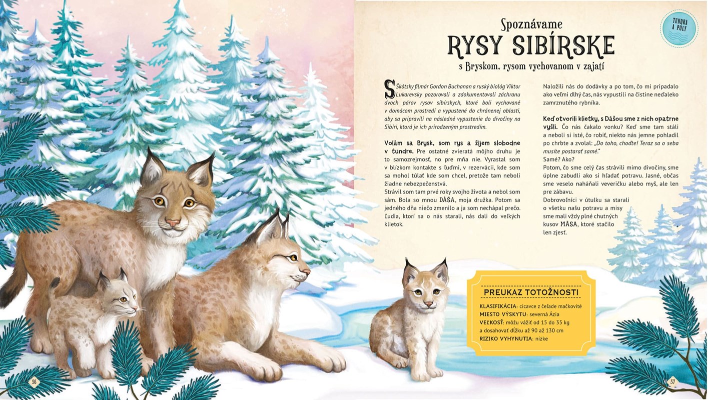 Fantastické dobrodružstvo, pri ktorom objavíte viac než 20 ohromujúcich faktov o zvieratách. Zábavné a pútavé príbehy rozprávajú samotné zvieratá alebo tí šťastlivci, ktorí ich zažili zblízka. Stretnete tigra, chameleóny, surikaty, rysy a veľa veľa ďalších zvierat na nádherných miestach ich prirodzeného výskytu. Dozvieš sa veľa zaujímavostí, získaš QR KÓD, vďaka ktorému si môžeš stiahnuť PAPIEROVÉ MODELY ZVIERAT, a učenie bude hrou.