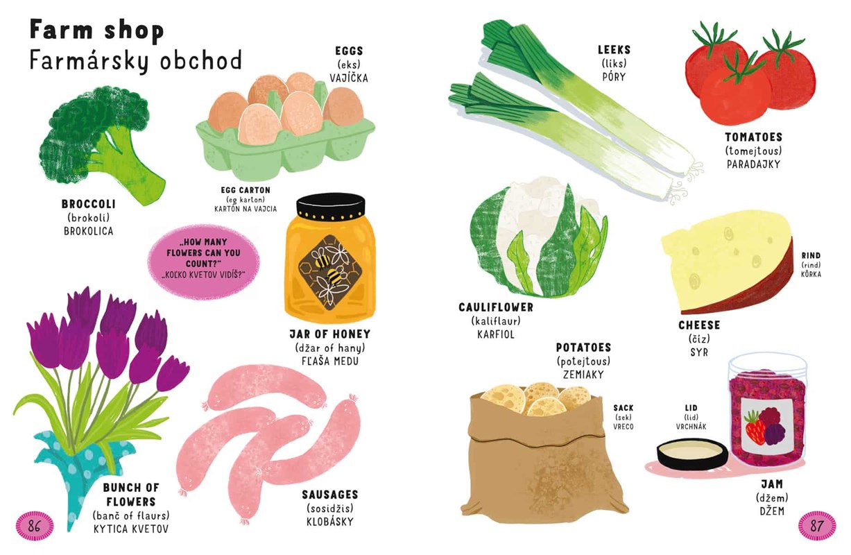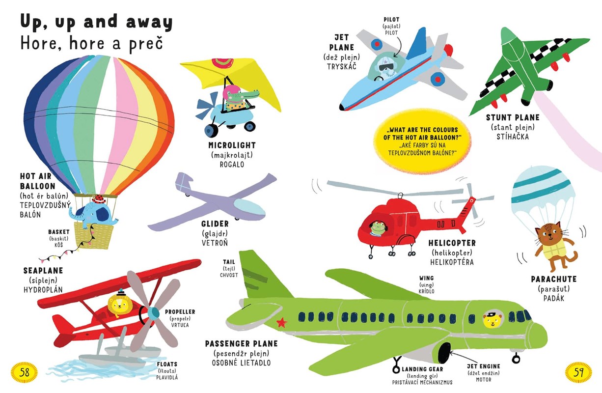 Malé deti zbožňujú, keď môžu objavovať svet okolo seba. Naučíme sa spolu názvy vecí okolo nás a to hneď v dvoch jazykoch. V tomto ilustrovanom anglicko-slovenskom slovníku pre najmenších nájdete na každej stránke aj drobnú úlohu.