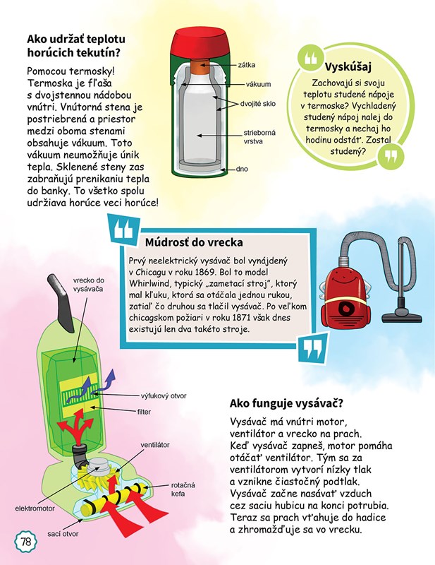 Ako funguje guma na ceruzke? Ako ryby dýchajú vo vode? Poradili by ste si s týmito otázkami, ak by vám ich položilo dieťa? S touto knihou pre malých aj veľkých zvedavcov máte jasné a jednoduché odpovede vždy poruke. Široká škála tém od prírodných javov cez zdravie, fungovanie bežných vecí v domácnosti, technológie, vesmír až po dinosaury uspokojí nejednu zvedavú hlavičku. Podporte deti v ich zvedavosti a osvojte si nové vedomosti spolu s nimi.