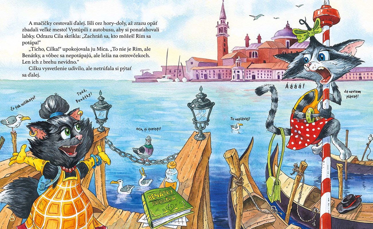 Séria knižiek Mačky svetobežníčky vás pozýva na cesty do rôznych kútov sveta. Zvedavá a vševediaca Mica spolu s veselou a úprimnou Cilou sú vždy pripravené na nové dobrodružstvá, príhody a, samozrejme, stretnutia. Mačky svetobežníčky obsahujú krátke poviedky s dynamickým príbehom, slovnými hračkami a jemným humorom, v ktorých sa malí čitatelia dozvedia veľa nových a zaujímavých vecí o svete!