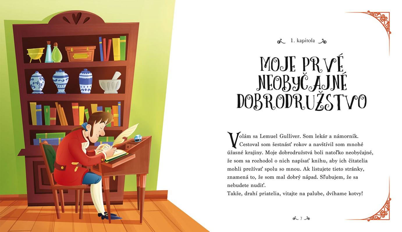 Námorník Lemuel Gulliver nie je obyčajný cestovateľ. Spletité cesty ho totiž zavedú do krajín plných záhad a úžasných tvorov. Navštívte ich spolu s ním a vydajte sa na dobrodružstvo medzi národy maličkých či obrovských ľudí, či dokonca medzi rozprávajúce kone! Kniha vychádza v sérii detská klasika a je určená pre čitateľov od 7 rokov.